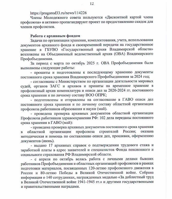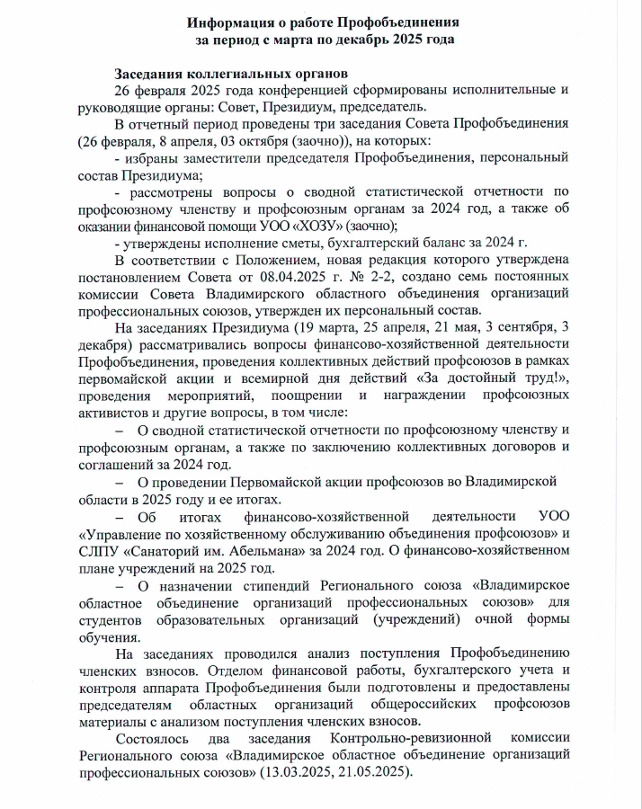 О деятельности Профобъединения и задачах профсоюзов на современном этапе